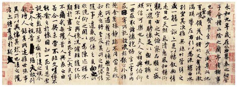 一画开天地、刻画符号、图腾符箓、甲骨文,到现代人了解认知的文字诞生,历经不知多少岁月的流传演变和发展,逐渐形成了记录和歌颂人类文明的文章典籍、诗词歌赋,让文明薪火相传、生生不息!也从龙书、凤书、鸟书、虫书等上百种原始书体发展到真草隶篆;从象形文字、甲骨文、金文、石刻、简帛朱墨手迹发展到人所共知的书法艺术,其中王羲之的作品《兰亭序》笔势飘若行云、矫若惊龙,在书法艺术史上成为绝唱!