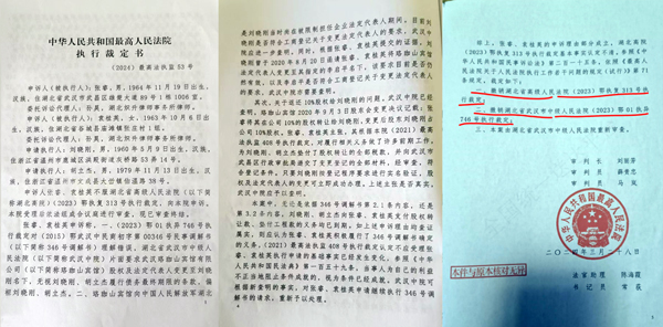 同时(2024)最高人民法院执监53号执行裁定也撤销了湖北高院(2023)鄂执复313号执行裁定、武汉中院(2023)鄂01执异746号等执行裁定。最高司法机关纠正地方司法错误,也侧面印证了武汉中院在案件审判中存在的错误。