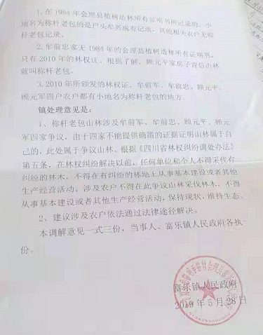 我拿出1984年的植树造林所有证明书(林权证),找村主任顾某海解决,没想到他们却偏袒对方。对方顾某平和顾某军他们是家族。就这样,他们一级打点着一级,到现在都没有解决清楚,对我1984年的植树造林所有证明书,视而不见。后来我又找到乡里,但是乡里也不采信。