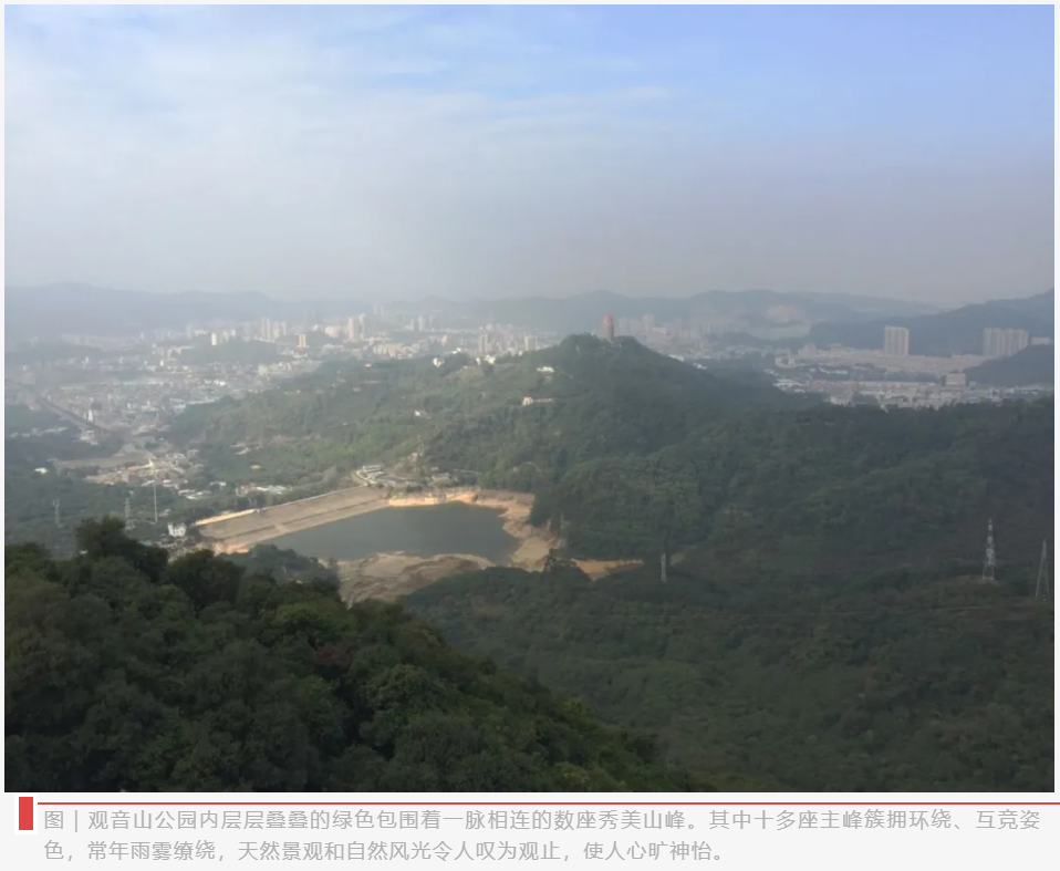广东观音山国家森林公园是全国首家民营国家级森林公园。它地处粤港澳大湾区的中心,位于东莞市樟木头镇。该公园生态优美、风景秀丽、草木繁茂、物种丰富。《环境与生活》2018年12月曾刊发《“活化石”中国小鲵在东莞观音山遇生存危机?》一文,报道该公园的一处小溪岩缝曾发现疑似“中国小鲵”。