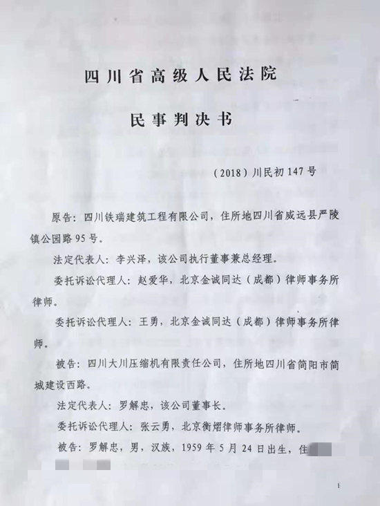 (2018)川民初147号民事判决书(首页)