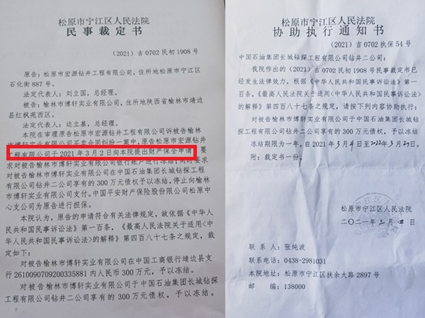 事情还得从2019年12月说起。陕西省榆林市博轩实业有限公司(以下简称博轩实业)负责人向记者介绍:2019年12月6日,松原市宏源钻井工程有限公司(以下简称宏源钻井)的法定代表人刘立国(又名刘立祥),称其在吉林油田有五口钻井的工作量,能挣大钱,并有一套钻机,不想经营了,想对外转让。博轩实业信以为真,就指派公司股东、实际控制人祁宁,与宏源钻井法定代表人刘立国签订了一份《钻机买卖合同》,按合同约定,50号钻机全套设备(资产)价格870万元,博轩实业先交200万元定金,余款用博轩实业挂靠宏源钻井现有的工作量进行钻井作业,所产生的工程款作为后续还款,直至将全部的设备款还清为止。