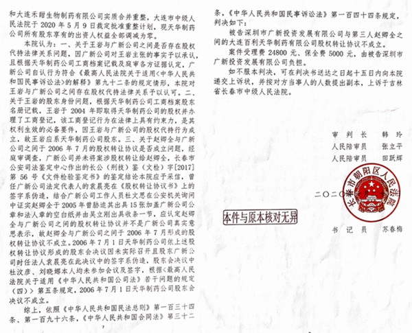 2021年2月3日,百利公司违法破产,现经长春市中级法院判决:赵卿全在百利公司股权系伪造变造股权转让协议所得;赵卿全涉嫌职务侵占罪已经被公安机关立案侦察;赵卿全与陈茂芝虚假诉讼已经广州市人民检察院认定;百利公司与拓达公司的所谓“债务”,已经公安机关委托审计部门进行审计,其债务系虚构。