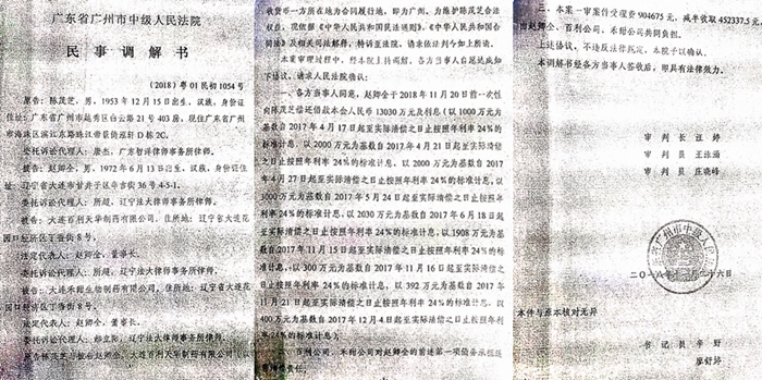 ⑥2020年,大连甘井子分局委托广东南天司法鉴定所做出粤南[2020]文鉴字第608号鉴定意见书认定:赵卿全与陈茂芝1.3亿元借款合同系伪造,该笔债务并不存在。