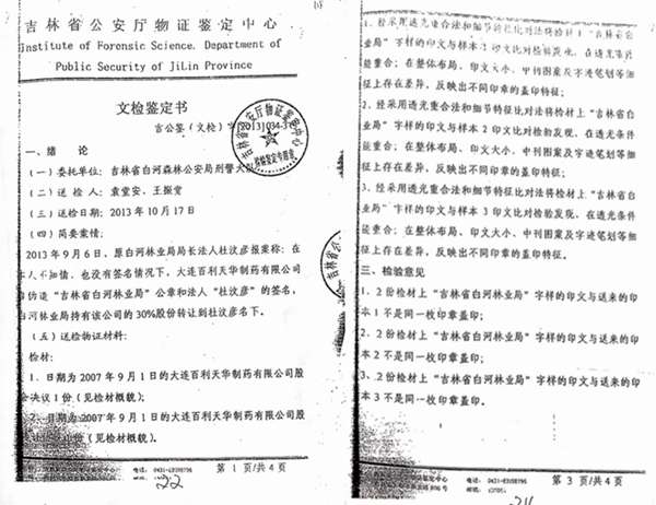 ③2013年,经公安物证鉴定中心鉴定(吉公鉴2013-034-1、2013-034-2、2013-034-3号),鉴定结论为赵卿全利用伪造股权转让协议、股东会决议等手段,侵占国有企业白河林业局30%股权。