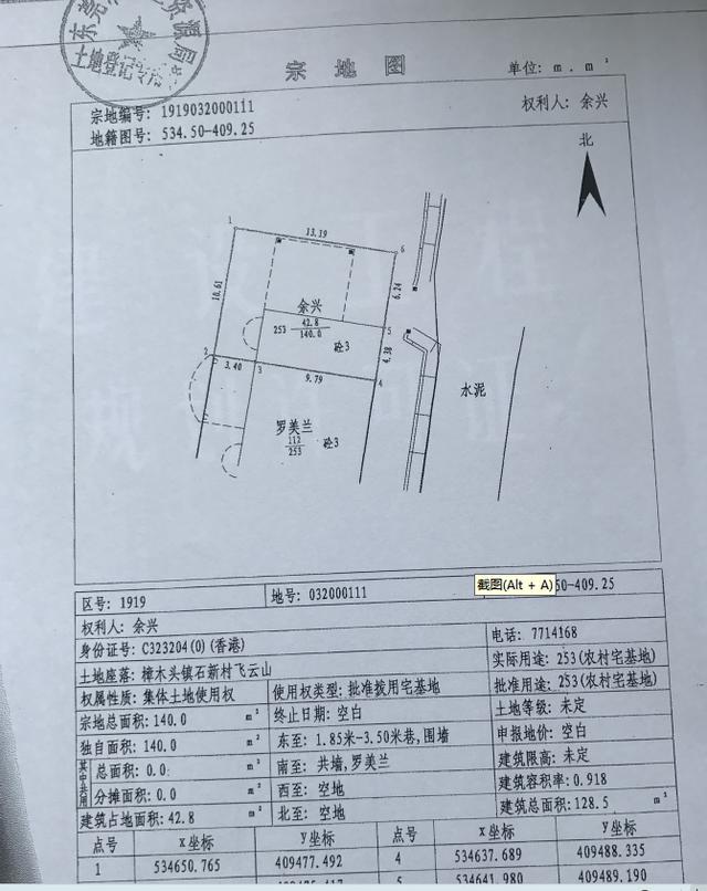 东莞市政府颁发给余兴的集体土地使用证。