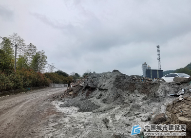 2025年3月30日,江北街道陈家塘塍村附近的351国道改建工程混凝土搅拌场场内污浊不堪