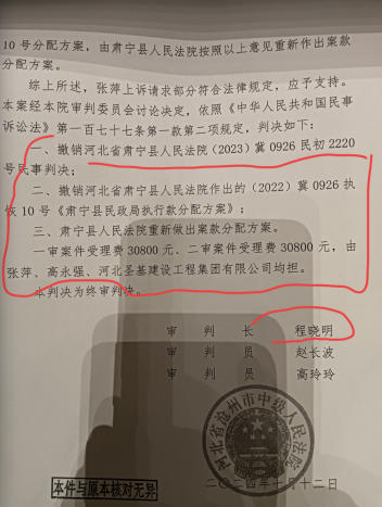 之后,出现案外人张某、沧州中天金属材料有限公司,(与高永强互不相识、并无经济来往)对肃宁县人民法院做出的分配提出了两次异议,均被肃宁法院驳回后,又上诉至沧州市中级人民法院,涉及案号(2024)冀09初12号民事判决书,2024冀09民终1602号民事判决书,(2024)冀 09 民终 1282号,判决认为高永强未取得民政局的执行依据,分配尚不符合条件,审判法官张某梅和程某明两人违背了保护农民工权益的立法精神,对“专项资金”性质的漠视。对高永强提供的证据和法律依据均不采纳,并“以权压法”判决中高永强自己血汗钱拿不回来,反而还要承担案外人莫需有的几万元诉讼费用。法律程序空转,浪费大量的法律资源。高永强对此判决不服,申诉至省高院,(2024)冀民申985号民事裁定书,认定高永强关于执行分配优先权,可依照其他法律途径另行主张。