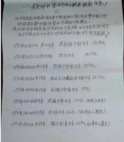 其六,乱用公款进行送财礼收买人心,他曾经说过上面保不住我就保不住他们自己。以上所述情况,我们村民早在2005年就向当地有关部门反映过。虽然我们反映情况是铁的事实,就是钢的事实也无用。
