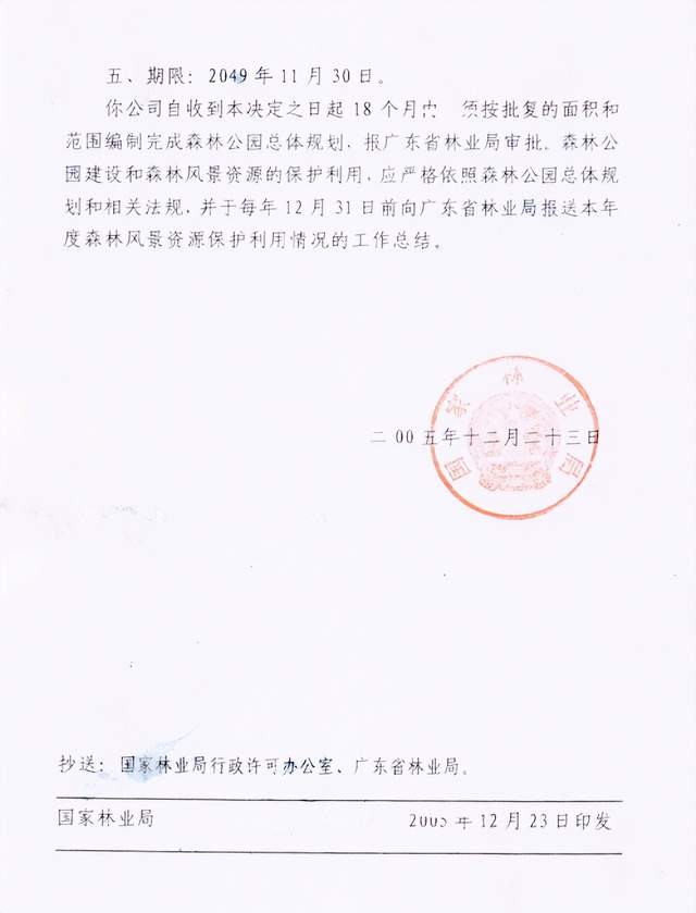 第二次:2019年4月17日,东莞市林业局为应付广东省国有林场和森林公园管理局2017年7月17日的督导通知和2018年3月9日的会议纪要,也曾致函通知观音山公园要求尽快按有关规定修编国家级森林公园总体规划并按程序上报国家林业局审批走形式。2020年5月19日,观音山公园根据该致函通知精神,委托北京时代天元旅游开发有限公司配合修编并再次前往市林业局希望配合完成修编所需事项,仍遭该局拒绝,不成立的理由仍是该公园四界不清。