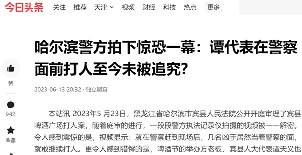 哈尔滨宾县人大代表谭天义在警察面前打人至今未被追究?