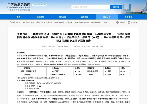 广西玉林:五校联合招标遭质疑!投诉违规合并标段,排斥中小企业