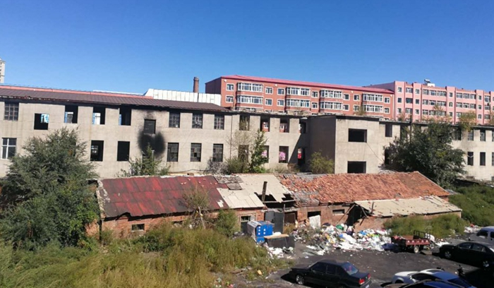 扶余市城区的太祖路,是城区内主要的繁华街道。但是,记者站在太祖路上却看到,一排一百多米长的三层沿街门市房异常破败。被拆掉门窗的窗户,脱落了瓷砖的漆黑的外墙,曾用来遮挡门窗的几片塑料布挂在墙上随风劲舞,二楼阳台处长满了杂草和灌木,一楼紧锁的卷帘门上锈迹斑斑且落满了灰尘,有的用木板或破布帘子作门挡在门口,有的没有门窗的房间里堆满了垃圾,还伴有阵阵恶臭......只有少数门市房仍在使用营业。这一切,与周围的高楼大厦、绿树成荫的街道形成了鲜明的对比。
