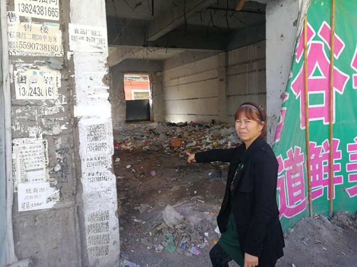 宋宇坤指认她家门市房变成了垃圾场。