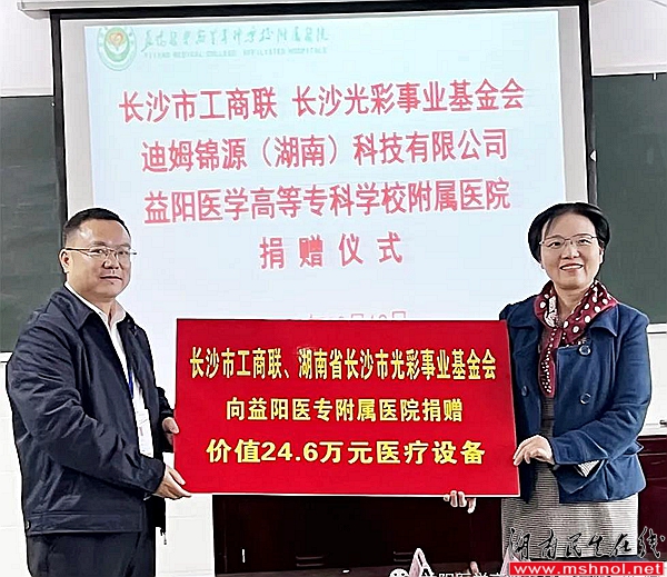 ▲长沙市工商联、湖南省长沙市光彩事业基金会将医疗设备定向捐赠给益阳医专附属医院