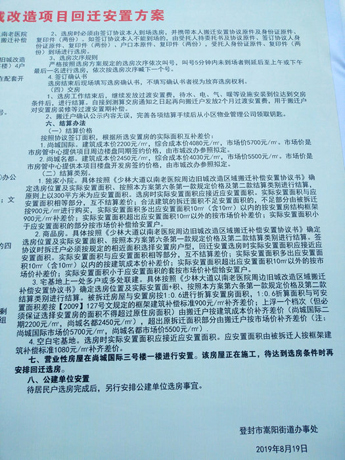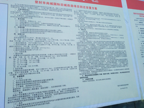 在2019年8月的选房现场,看到嵩阳街道办事处发布的回迁安置公告后,拆迁户的心里一下子由喜转悲。