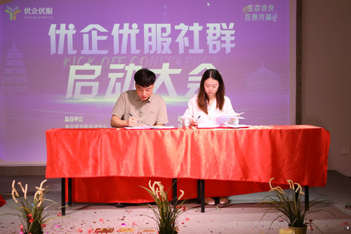 会议期间,博士100生产力论坛陕西秘书处、凝聚力量企业家俱乐部、陕西和致君兴实业有限公司分别与陕西优企优服信息科技有限公司进行战略合作签约,其他企业也同期在会场签约。