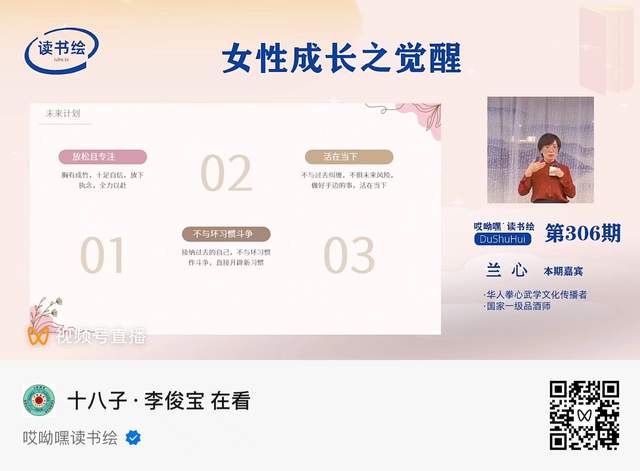 命运是如此神奇,时间一晃而过,一年后的今天,我也来到金桥创客天地,在哎哟嘿读书绘的舞台,来分享自己的——《女性成长之觉醒》。