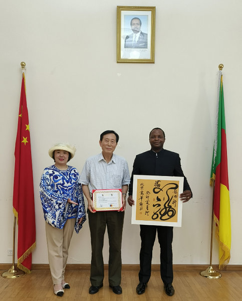 2023年8月4日下午,喀麦隆驻华大使馆邀请中名联签约书画家高华强老师到使馆进行文化交流,大使对高华强老师作品高度评价,对高华强老师书画作品所蕴含的深厚的中华传统文化底蕴极其赞赏,现场把中名联签约书画家高华强老师作品作为国礼珍藏,赠送全球友华政要,和中名联甘当中国文化国际传播桥梁。喀麦隆驻华大使馆现场为中名联签约书画家高华强老师颁发了中喀文化交流使者收藏证书。