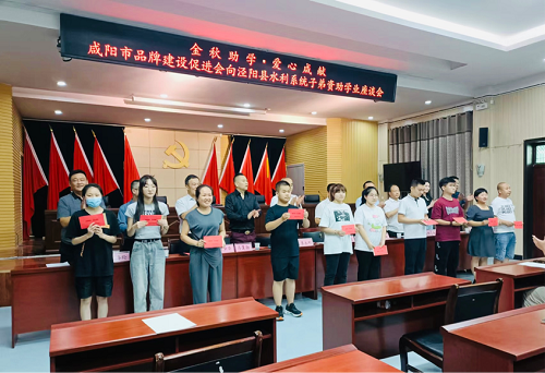 2023年8月19日上午,咸阳市乡贤协会、咸阳市品牌建设促进会、省品促会咸阳运营中心和咸阳祥瑞和工贸有限公司赴泾阳开展捐资助学活动,向泾阳县水利系统21名子弟捐款3万元资助学业。咸阳市“两会一中心”领导高春毅、周少华、马蓬勃、张斌、周俊辉,爱心企业咸阳祥瑞和工贸公司代表黄荟臻,泾阳县水利局党委书记、局长李永刚、工会主席和全体干部职工子弟40多人参加了捐资活动。