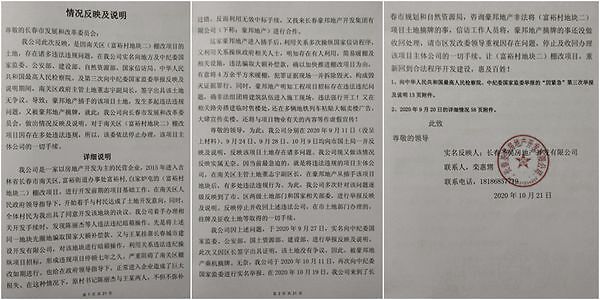 劲龙公司的老板栾惠甥在他的实名投诉信中称:我公司是一家以房地产开发为主的民营企业,2015年进入吉林省长春市南关区富裕街道办事处富裕村白家炉屯的(富裕村地块二)棚改项目,进行开发前期的项目基础工作,在南关区政府领导指导下,开始着手与村民达成了土地开发意向,同时,全体村民为我公司出具了同意开发该地块的决议。但是,我公司在着手办理相关开发手续时,发现原富裕村书记陈丽杰等人违法违纪暗箱操作,先是将上述同一地块先圈地骗取国家大额补偿款,又与王某挂靠长春市城市建设开发有限公司,对该地块进行暗箱操作,利用关系违法违纪操纵项目招标,形成违规项目停顿七年之久,严重阻碍了南关区棚改如期进行,也给正常进入的企业造成了巨大损失。在这种情况下,原村书记陈丽杰与王某两人,不但不弥补过错,反而利用无效中标手续,又找来长春豪邦地产开发集团有限公司(下称豪邦地产)进行合作。豪邦地产进入插手后,利用关系多次操纵信访程序,又利用关系操纵政府相关人士,明知存在有人利用简易暖棚及相关设施违法骗取大额补偿款,却以加快推进棚改项目为由,有意将4万余平方米暖棚现场拆除毁灭。同时,豪邦地产明知工程项目招标存在违法违纪问题,却非法使建筑队伍进入施工现场,违法强行开工!又在相关路旁搭建临时售楼处,还在多辆地铁列车上粘贴大幅卖楼广告,大肆宣传卖楼,还将与项目物业有关的内容等作虚假宣传!。