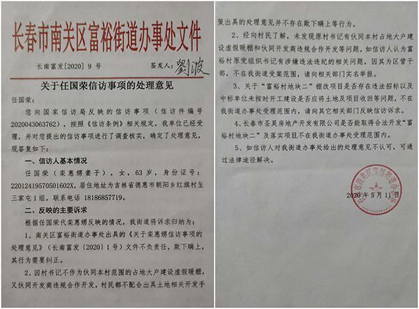 长春市富裕街道棚改项目被指欺上瞒下,信访答复遭质疑