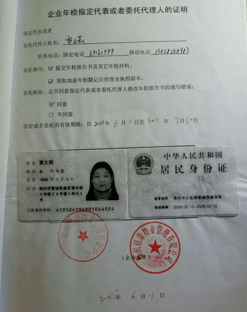 2004年周宁勤非法获得郑州铭康物业管理有限公司法人代表时的营业执照见图片。