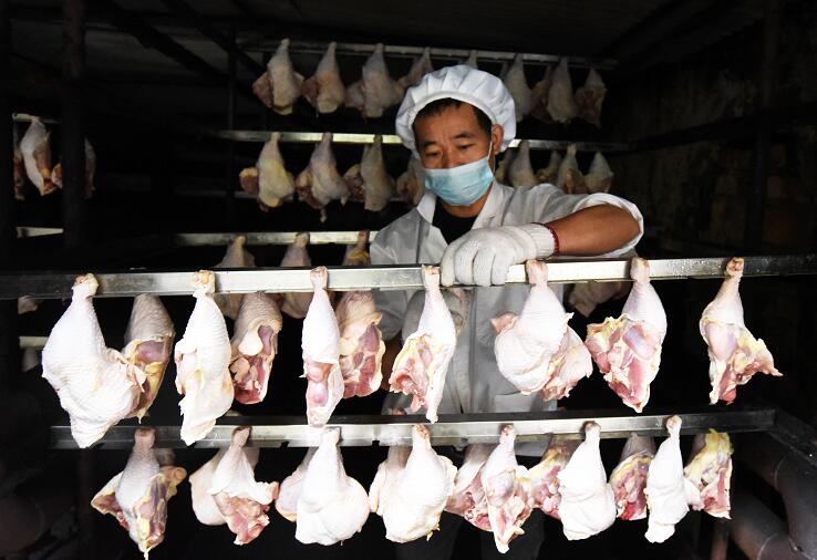 据林清人介绍,上饶鸡腿不添加防腐剂,连色素都是用红米制成的红曲粉,达到纯天然效果,其制作生产工艺极其复杂。