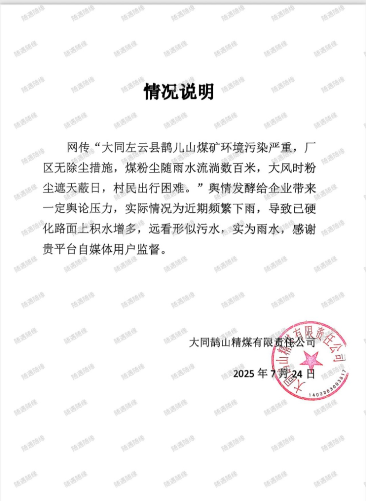 近日,大同鹊儿山精煤有限责任公司因环境污染问题被媒体曝光后,非但没有积极整改,反而试图通过删稿掩盖问题。
