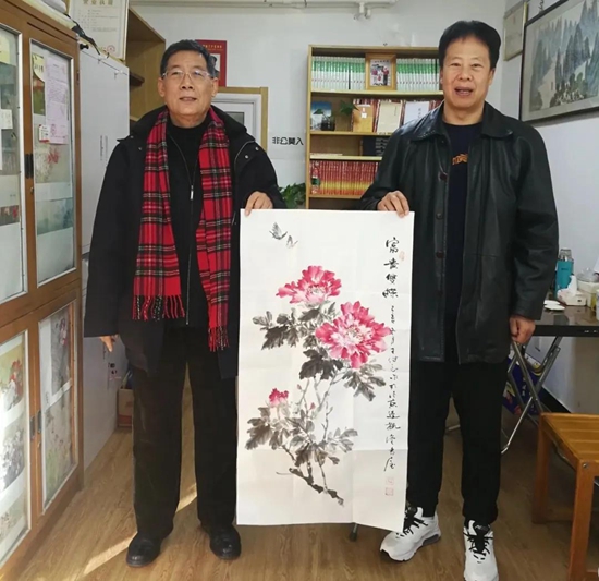左起:李士杰代表书店接受王继良先生捐赠的国画