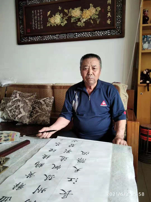 刘炳文 男 77岁 天津宝坻人。自幼酷爱书法,常年俯首砚田,寒暑不辍。书法初学颜、柳、欧,后临习二王诸家,兼收并蓄,凡与己相近者必多留意揣摩,汲取他人之长。书写亦注意线条的质感、节奏和墨色的变化。作品已形成温润流畅、藏露互用、方圆兼备、古朴典雅、洒脱飘逸的风格。