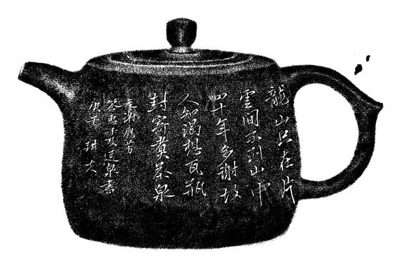 茶诗通常字数偏多,难以布局,刻在紫砂壶上往往难以驾驭。但想,能品诗、品茶、品壶,又有赵先生的精神引领,必然从容淡定,宁静和美,物我玄会,明心见性。那就相约出发,前往那个人间精神乐园唯美的仙境,在茶文化和紫砂文化相互融合中得到更多的精神滋养。