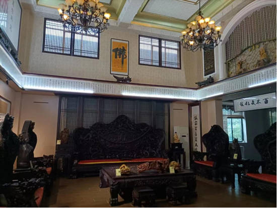 在这个百花齐放百家争鸣的新时代,我的耕耘,如同鲁迅先生笔下的孺子牛,在某些朋友看来为时已晚。但是我更看重的是精神的寄托。十大传世名画中的五牛图精品黄花梨木雕作品被我放置在聚典阁大厅的正中间,这或许代表了我根植于内心深处的文化信仰,也是我的精神图腾。