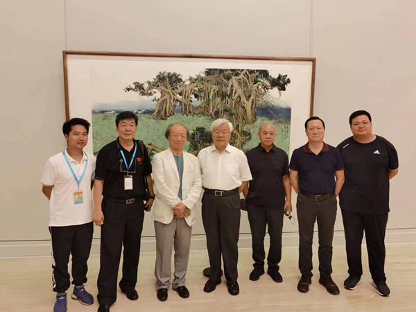 原文化部党组书记、部长蔡武,中国工笔画学会名誉会长冯大中,中国工笔画学会副会长刘金贵、夏荷生、罗翔,学会办公室主任孙志刚,会长秘书邹训精在一起观展。