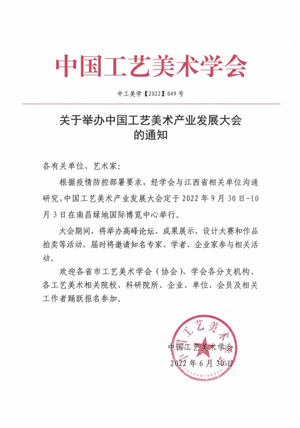 1.中国工艺美术学会中工美学 【2022】 049号文