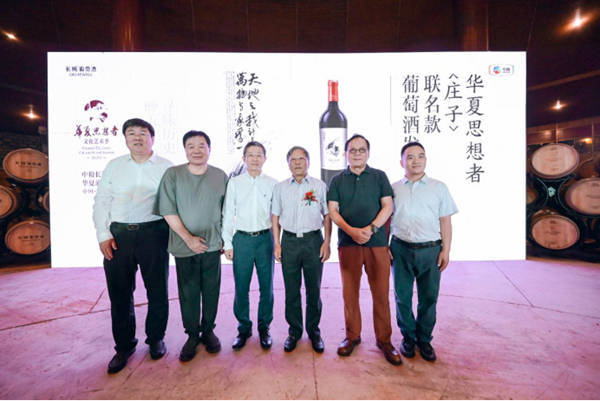 在活动现场,华夏酒庄还正式发布了“华夏思想者”系列产品中的庄子款葡萄酒,产品的酒标是由著名画家冯远创作。从酒标设计到酒体风格,庄子款葡萄酒吸纳和融合几千年的中国文化和中国葡萄酒文化精髓,展现了华夏葡萄酒悠久、凝练的大窖之风。