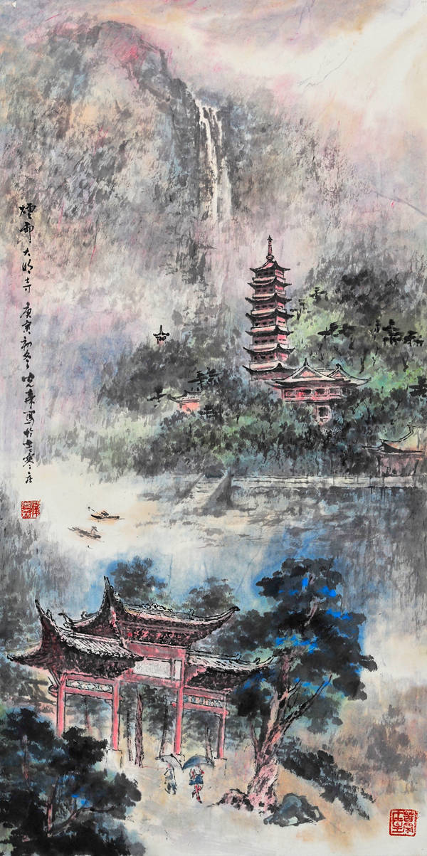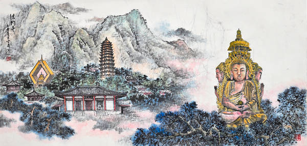 端砚与佛教结缘,早在宋代就已经开始,此后便一直绵绵不绝。其图案主要为两种类型:一种是雕刻佛教人物形象,如佛祖、菩萨、罗汉等;另一种就是雕刻佛教寺庙建筑。这套“百刹砚”属于后一种类型。虽然古已有之,但是纵观古今我国各个砚种,还不曾有哪一个砚种将全国各地著名寺庙纳入自己的创作中。所以,这套“百刹砚”是既有继承又有创新的。这不仅是敢于构想扩大数量的简单问题,其间还需要走访这些散布在我国四面八方的古代名刹,仔细观察体验,绘制这些古代名刹独特风韵的图案。这是一项需要时间,更需要艺术匠心并付出艰辛劳动才能完成的工作。韩光森先生是个有心人,作为山水画家,他早就敏锐地感受到了古代佛寺建筑与山水风景的密切关系,因此在他几十年的绘画生涯中,已经积累了许多佛寺建筑和山水名胜相结合的作品。正是有这样一些作品为前提,所以才会有这个“中华百方古刹传世精品端砚”的创作实施。