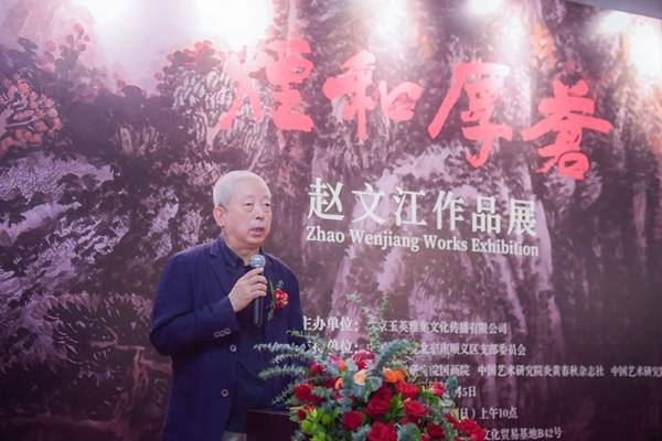 赵文江经常开着自己开着车,在苍茫的旷野上疾驶,在奔涌的长河边奔驰,他任自然的气象在自己的胸中的激荡,任世态的沧桑在他的周遭轮回。他的作品从来不拘泥于一草一木,一山一石。他要画的是中国的千沟万壑,他要画祖国的一百座名山大川。他把这个系列的创作称之为“百岳图”,我们在这里期待他的佳作早日问世,祝他的艺术创作历久弥新!