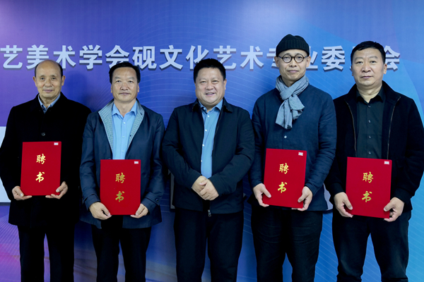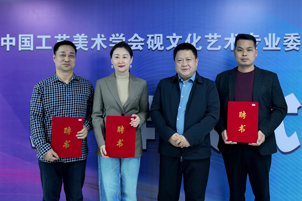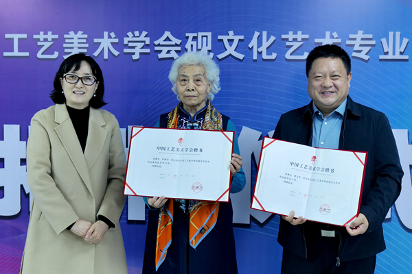 在热烈的掌声中,任建新副理事长宣读中国工艺美术学会《关于新建中国工艺美术学会砚文化艺术专业委员会的通知》,并向董方军主任、张淑芬名誉主任颁发聘书。