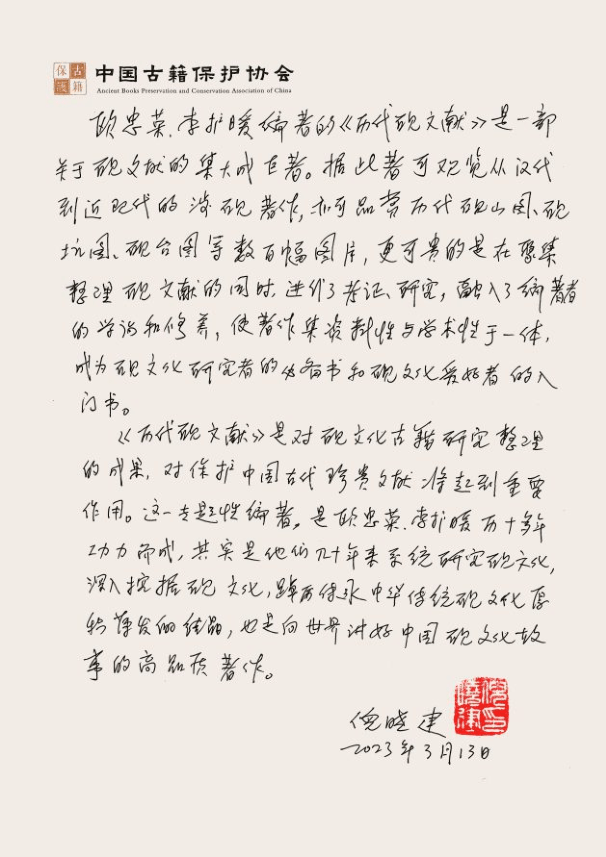 《历代砚文献》是对砚文化古籍研究整理的成果,对保护中国古代珍贵文献将起到重要作用。这一专题性编著,是欧忠荣、李护暖先生历十多年功力而成,其实是他们几十年来系统研究砚文化,深入挖掘砚文化,踔厉传承中华传统砚文化厚积薄发的结晶,也是向世界讲好中国砚文化故事的高品质著作。