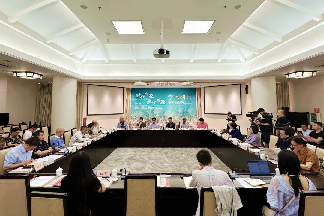 “时代气象 漓江探源——阳光水墨画作品展”学术研讨会同期举办,康伟、徐粤春、余宁、尚辉、王仲、王镛、梁鸿鹰、徐涟、裔萼、程阳阳、汪为胜、张复兴、谢麟、陈毅刚、冯知军、阳山、唐文忠、韦广寿等专家学者,围绕阳光漓江探源水墨作品的学术价值和时代意义、将桂林山水画的创作成果转化为桂林城市美术符号的文化思考等议题展开了深入的交流与研讨。大家认为,20世纪以来,中国画创作的语言风格得到全新发展,桂林山水以其独特的喀斯特地貌与“玉碧罗青意可参”的佳境成为众多国画大家的创作题材。前辈已着先鞭,后学未遑多让——在桂林山水风物主题的创作中,阳光以其天趣飞翔的图像、充盈着时代气息的笔墨而独树一帜,在美术界乃至社会各界产生了广泛影响。水墨语言的现代性转换是阳光水墨画创作发展的动力与路径,他的创作不仅仅是在创造新的笔墨体系,也是在塑造新的时代精神。