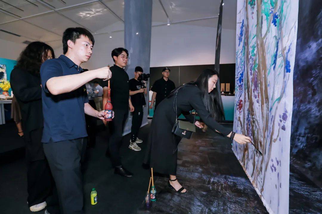 展览开幕仪式结束后,九零创作画社的青年艺术家们开始带领现场嘉宾一同参与了即兴艺术创作活动。在创作中大家热情交流关于艺术的创作感悟和观展感受。