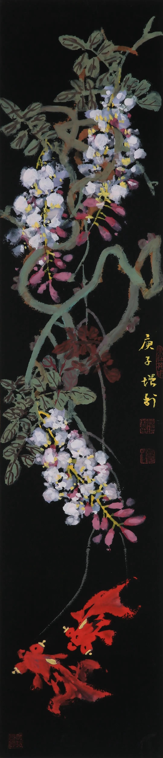 慕增利作品幽峭内敛,虚柔不失浑朴,清寂中又见空灵与孤傲,他的墨牡丹和鱼虫花鸟纯净、倔强,又恬然渊默皆无暇顾人;鱼作品清俊脱俗,守简素而意醇,发纤浓于古淡,笔墨已逐渐自由脱去畦町,更是其自身心灵的物化。
