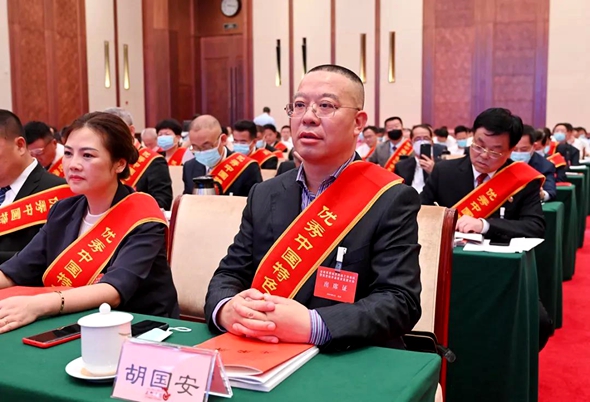 ▲第四届“全国优秀中国特色社会主义事业建设者”胡国安参加会议