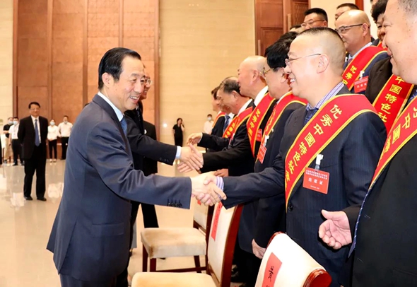 ▲湖南省委书记、省人大常委会主任许达哲接见“全国优秀中国特色社会主义事业建设者”胡国安董事长