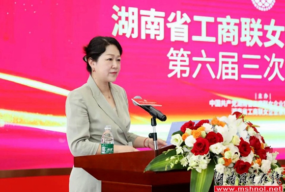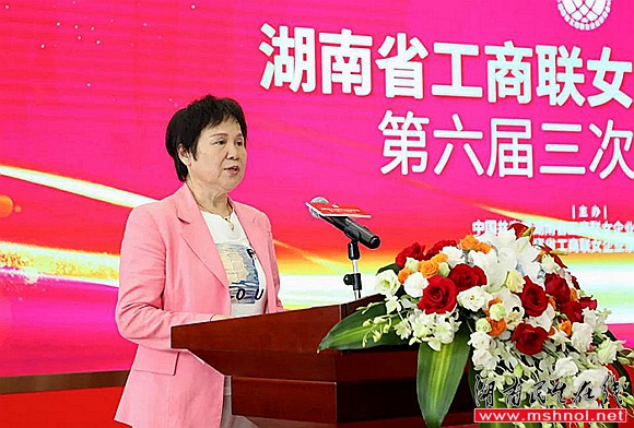 ▲湖南省工商联女企业家商会会长吴建平作年度工作报告
